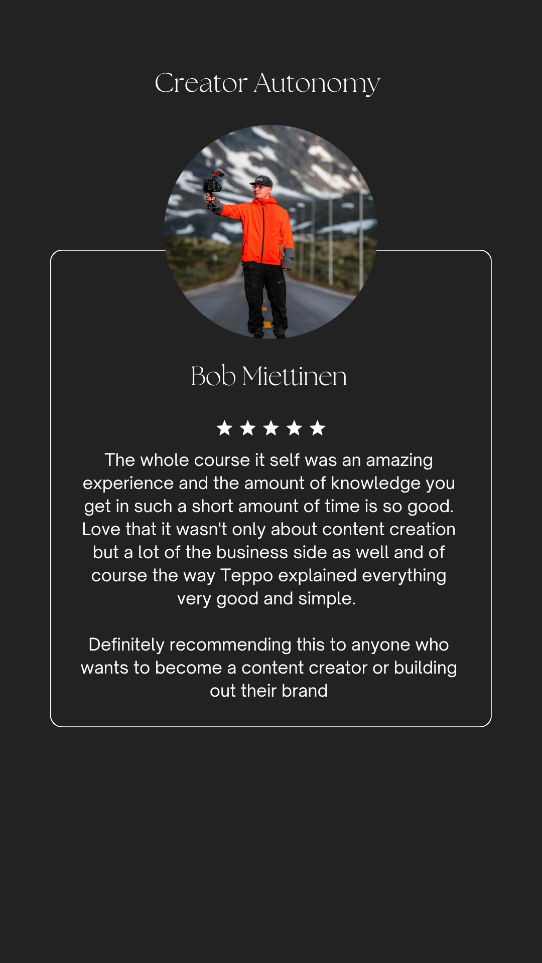 In Roger's words, "Teppo was able to reverse engineer the content creation process to grow his audience. After taking the course, I learned new strategies for batching content creation on weekends, allowing me to post more consistently. I also discovered new ways to convey the value of my platform to engage with and partner with my dream brands.”
